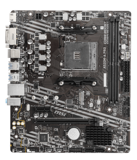 MSI A520M-A Pro là dòng mainboard phổ thông thuộc series PRO của MSI, nổi bật với độ bền cao, khả năng tương thích tốt với CPU AMD Ryzen 3000/4000G/5000 Series (Socket AM4), đặc biệt phù hợp cho PC văn phòng, học tập, giải trí nhẹ và build cấu hình tiết kiệm.
