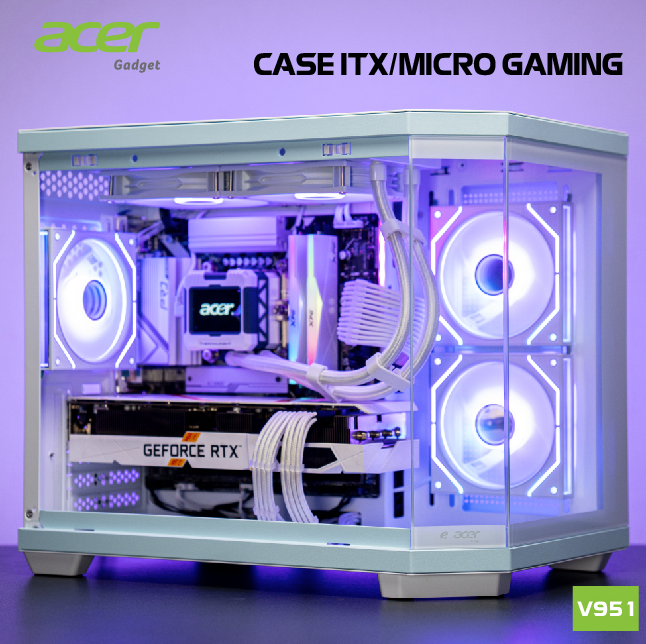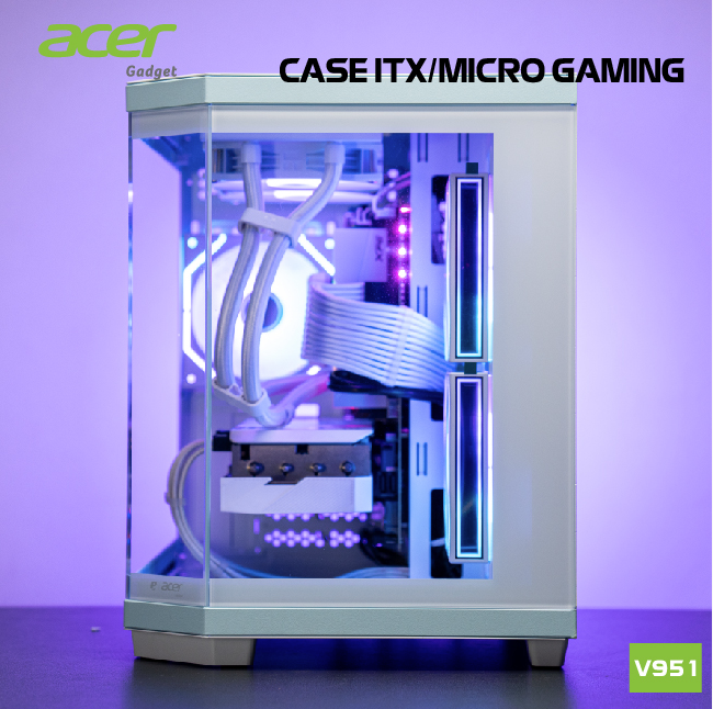 Vỏ case máy tính ACER V951 BLK M-ATX GAMING Kèm 3FAN ARGB - Màu trắng