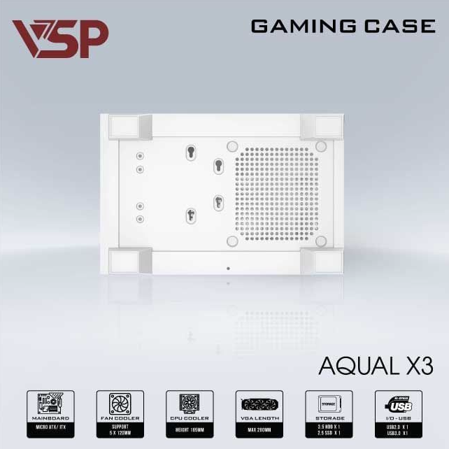 Vỏ case máy tính VSP AQUANAUT PRO GAMING M-ATX X7 - Màu trắng, không kèm fan