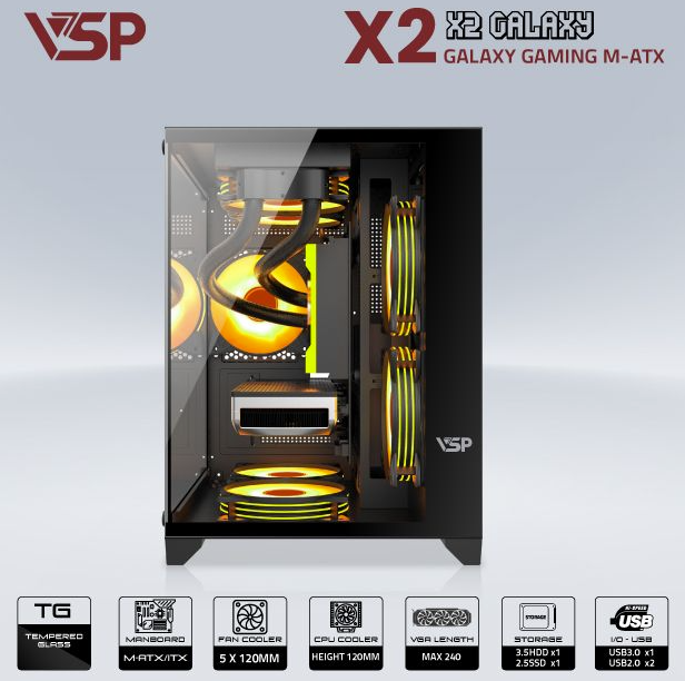 Vỏ case máy tính VSP AQUANAUT PRO GAMING M-ATX X2 GALAXY - Màu hồng, không kèm fan